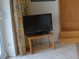 hochwertige Fliesen mit Teppichen, integrierte Deckenleuchten, Flat-TV, Föhn, Bügeleisen, Spielemagazin
